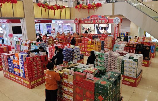 同日,延吉百貨大樓節(jié)日裝飾喜慶亮眼,新春氛圍感拉滿。一樓大廳內(nèi),特意設(shè)置了年貨專區(qū),堅(jiān)果、糖果、海產(chǎn)品、酒水禮盒整齊陳列,延邊特色產(chǎn)品、全國(guó)名優(yōu)好物應(yīng)有盡有,從家庭自用到走親訪友的禮盒套裝,再到日常餐桌的生鮮食材,品類豐富、一應(yīng)俱全!艾F(xiàn)在都提倡健康生活,多買點(diǎn)水果、海產(chǎn)品,老人孩子都愛(ài)吃,禮盒送禮也體面,趁著優(yōu)惠多買點(diǎn)!笔忻駝⑴亢图胰苏奶暨x著干果禮盒與生鮮商品。