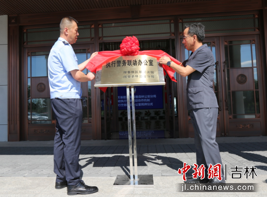 當(dāng)天,琿春林區(qū)法院黨組書(shū)記、院長(zhǎng)鄭國(guó)榮與琿春森林公安分局黨委書(shū)記、局長(zhǎng)李本三共同為“執(zhí)行警務(wù)聯(lián)動(dòng)辦公室”揭牌。兩家單位黨委成員以及40余位干警參加了揭牌儀式。揭牌儀式后,大家共同觀摩“執(zhí)行警務(wù)聯(lián)動(dòng)辦公室”操作流程。