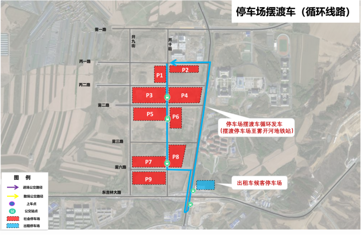 2號(hào)門:乘坐接駁3號(hào)線公交車,返回地鐵霧開河大街站C口;換乘停車場擺渡車,返回臨時(shí)停車場。(如下二圖)