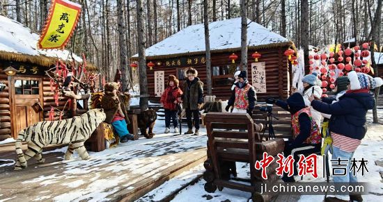 愛心玫瑰與雪人谷成為打卡熱點,百余個創(chuàng)意雪人錯落分布,雪雕玫瑰形態(tài)各異,游客爭相合影。關(guān)東文化園威虎山土匪寨角色扮演區(qū)人氣爆棚,游客換上土匪服飾,手持道具槍模擬“打土匪”互動,笑聲與吶喊聲中重現(xiàn)歷史場景!斑@比單純滑雪更有意思!”游客王先生興奮地表示,“土匪寨體驗讓我仿佛穿越回關(guān)東時代,文化元素讓冰雪活動更鮮活!
