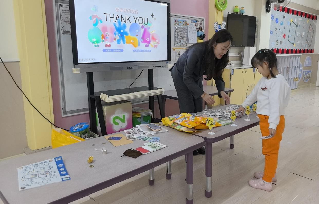 考慮到幼兒注意力特點,主講人王琳還設(shè)計了“錢幣小法官”游戲:她展示不同場景卡片,比如“小朋友幫媽媽保管手機,不隨便點開付款鏈接”“陌生人要借手機轉(zhuǎn)賬,小朋友說‘要問爸爸媽媽’”,讓孩子們判斷“做得對不對”。孩子們積極舉手,有的站起來模仿卡片里的小朋友說話,有的拉著同伴一起討論,原本抽象的安全規(guī)則,變成了能判斷、能模仿的具體行為,現(xiàn)場笑聲與回答聲此起彼伏,連老師都忍不住加入互動。