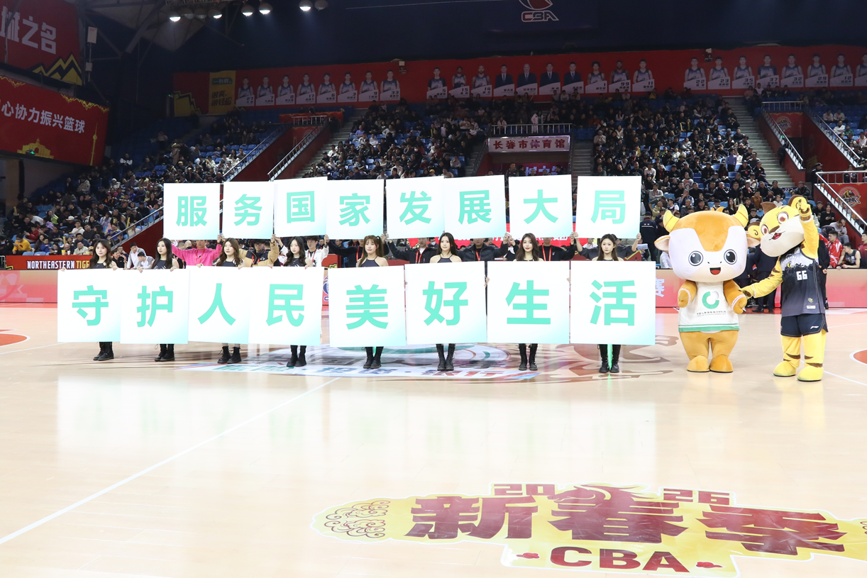 賽場中央,中國人壽專屬展示環(huán)節(jié)成為節(jié)間亮點。主持人熱情開場:“歡迎來到由CBA聯(lián)賽官方主贊助商中國人壽帶來的互動環(huán)節(jié)。中國人壽為CBA球員助力打call!”伴隨著動感的音樂,16名啦啦隊員率先登場,在中圈帶來活力舞蹈表演,表演結(jié)束后,隊員們每人舉起一張展示牌,共同拼組出“服務國家發(fā)展大局,守護人民美好生活”的企業(yè)使命,東北虎俱樂部吉祥物與中國人壽壽險牛犇犇吉祥物攜手登場,在場內(nèi)舞動,萌趣的姿態(tài)與整齊的展示相映成趣,瞬間點燃現(xiàn)場的氛圍。表演落幕,“一個國壽,一生守護!感謝中國人壽為我們帶來的精彩時刻,中國人壽,相知多年,值得托付,要投就投中國人壽!”的話語響徹賽場,將品牌的守護理念傳遞給現(xiàn)場的每一位觀眾。