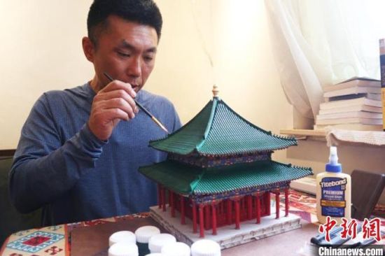 “根本停不下來(lái),比小時(shí)候玩的積木更吸引我!闭f話時(shí),王雪松的眼睛一直沒有離開“五爺廟”。那是她的一件新玩具,她在用顏料彩繪房梁,這件新玩具已經(jīng)進(jìn)入上色階段,不日將完工。