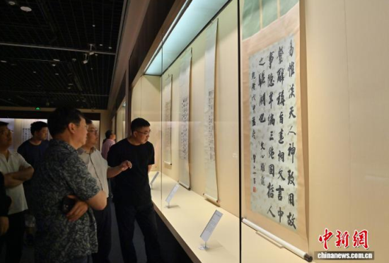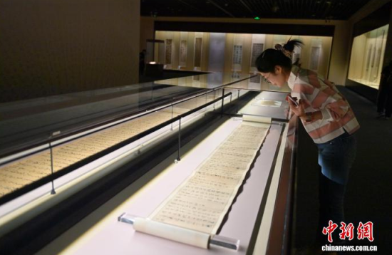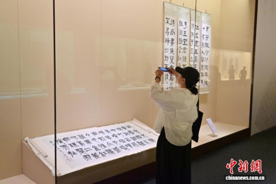 9月10日,參觀者在位于吉林省長春市的吉林省博物院參觀董其昌的《戲鴻堂雜書冊》。近日,“吉林省博物院藏明清書法精品展”在長春開展,此次展覽遴選該院所藏明清書法精品五十余件,均為珍貴文物。展覽不僅系統(tǒng)梳理了明清兩代書法藝術的發(fā)展脈絡,更是對中華優(yōu)秀傳統(tǒng)文化的傳承與弘揚。中新社記者 張瑤 攝