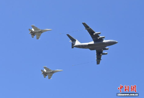 9月16日,吉林長(zhǎng)春,運(yùn)油-20A(右一)與殲-16雙機(jī)編隊(duì)通場(chǎng)!埇 攝