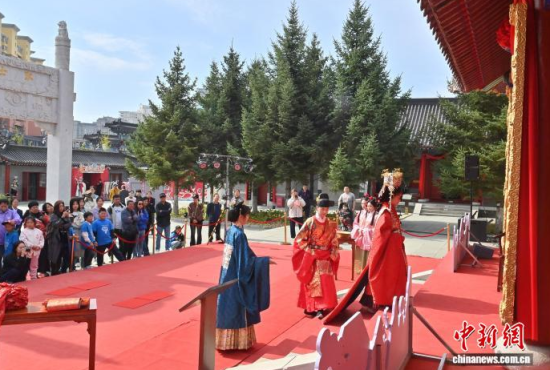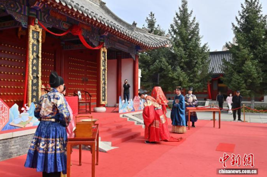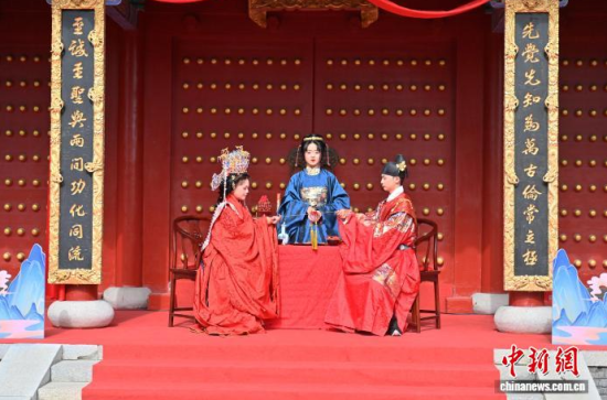 10月7日,吉林長春文廟舉行了一場明制漢婚沉浸式展演。漢服愛好者依次呈現(xiàn)奠雁、同牢、合巹等傳統(tǒng)禮儀,生動還原明代婚俗,F(xiàn)場通過流程講解與道具展示,解讀禮儀背后古人對婚姻與美好生活的寄愿。中新社記者 張瑤 攝