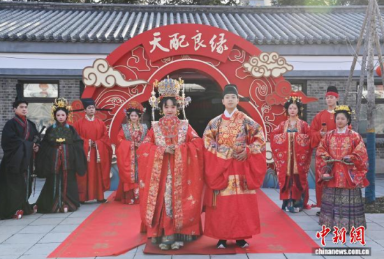 11月7日,偽滿皇宮博物院主辦的《天配良緣——近現(xiàn)代婚戀婚俗實物展》于長春開幕。展覽通過婚書、嫁妝等300余件民間實物,帶領(lǐng)參觀者沉浸式感受不同年代的婚禮婚俗。現(xiàn)場通過漢服走秀、嗩吶演奏等演出,展現(xiàn)傳統(tǒng)婚儀魅力。中新社記者 張瑤 攝