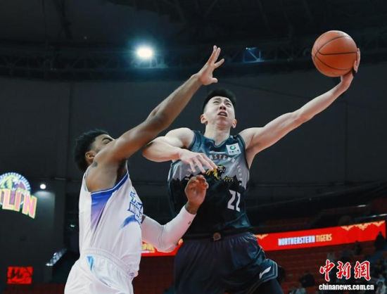 吉林隊(duì)22號賈昊(黑衣)正在上籃。 吳金澤 攝