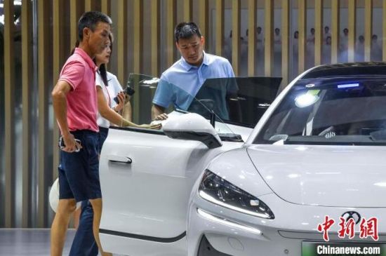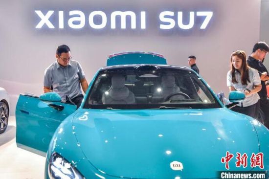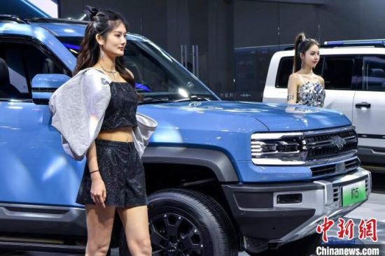 9月13日,海南?,車模助陣海南金秋車展。當(dāng)日,因超強(qiáng)臺(tái)風(fēng)“摩羯”而兩度延期的2024海南金秋車展暨智能網(wǎng)聯(lián)新能源車展在?谂e行。作為臺(tái)風(fēng)災(zāi)后海南的首場(chǎng)車展,本次展出面積達(dá)5萬平方米,共有近百個(gè)汽車品牌參展,其中新能源車型占比70%。中新社記者 駱云飛 攝