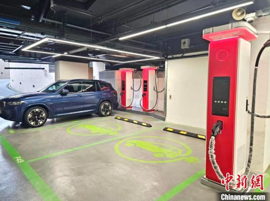圖為華為在香港將軍澳藍塘匯商場停車場內(nèi)設(shè)置的充電站。 香港華為國際有限公司供圖