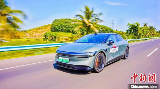 4月12日,在海南東線高速進行“極智長測”測試的新能源汽車。孟子瀟 供圖