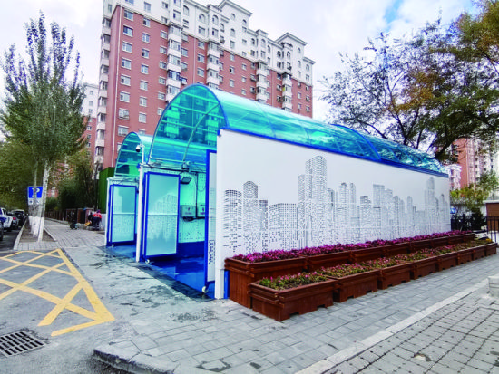 “華順街與華遠(yuǎn)路交會處共有3個環(huán)衛(wèi)設(shè)施,包括公廁、環(huán)衛(wèi)工人休息室和生活垃圾轉(zhuǎn)運(yùn)站。原有環(huán)衛(wèi)設(shè)施較為老舊且破損嚴(yán)重,不僅難以滿足環(huán)衛(wèi)工作日常需求,整體老舊形象還影響周邊市容環(huán)境!表樦详P(guān)區(qū)城市管理行政執(zhí)法局環(huán)衛(wèi)科科長董建輝手指的方向望去,改造后的環(huán)衛(wèi)設(shè)施煥然一新。