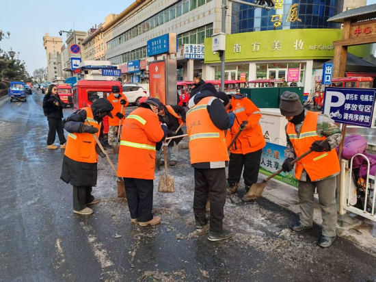 同時走訪沿街商戶、商場,督促相關(guān)負責人及時清除背光區(qū)冰面,清理時根據(jù)實際情況采用人工清理和撒布融雪劑相結(jié)合的方式,確保道路整潔安全。本次行動,城管執(zhí)法局出動執(zhí)法人員及環(huán)衛(wèi)人員共計200余人,廣泛動員臨街商戶、相關(guān)單位積極配合,投入到除冰工作中來。