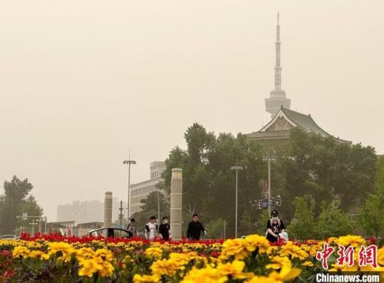 長春文化廣場雕塑!」选z市民在公園散步!」选z城市上空昏黃一片!」选z沙塵天氣使能見度降低!」选z城市綠樹被沙塵籠罩!」选z