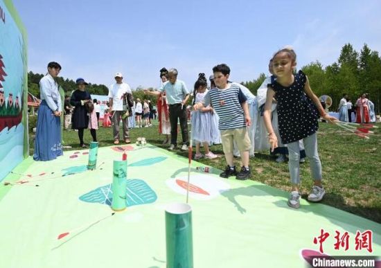 外國小朋友正在玩“投壺”游戲 張瑤 攝