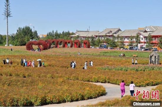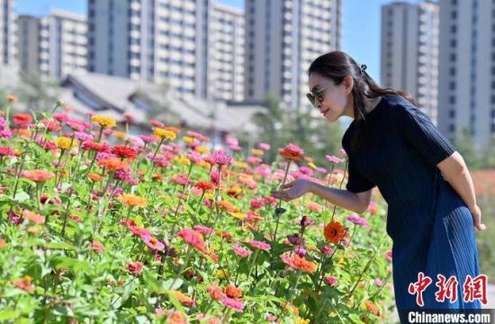 9月12日,在長(zhǎng)春北湖花海,姹紫嫣紅的花朵在綠樹(shù)藍(lán)天的映襯下構(gòu)成了一幅美麗的秋色畫卷,吸引眾多游客前來(lái)觀賞。