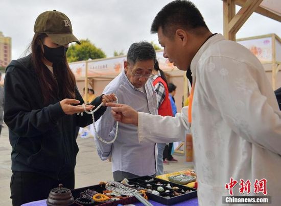 9月19日,在長春文廟廣場上,“非遺”手藝人向市民展示作品。當(dāng)天,長春市南關(guān)區(qū)金秋文化旅游節(jié)啟幕,具有地方特色的非遺項目匯聚,向現(xiàn)場市民近距離展示多樣的非遺魅力。