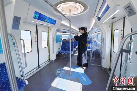 3月21日,全球首列氫能源市域列車在長春進(jìn)行時速160公里滿載運(yùn)行試驗。圖為列車車廂內(nèi)部。中新社記者 張瑤 攝