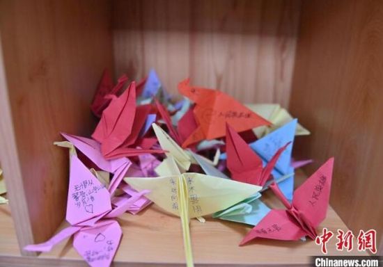 這些千紙鶴是轄區(qū)學(xué)生們送來的禮物,每個千紙鶴上面都有一句祝福的話,讓“木蘭警務(wù)團”的女警們十分感動!埇 攝