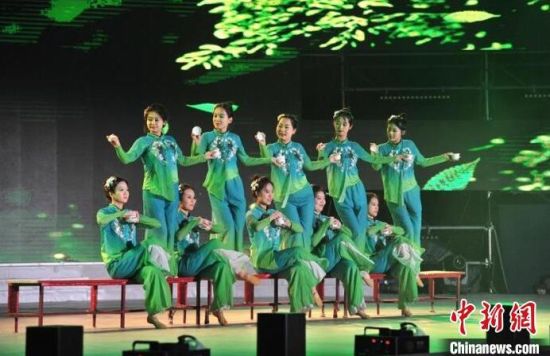 大學(xué)生在表演舞蹈《春意》。