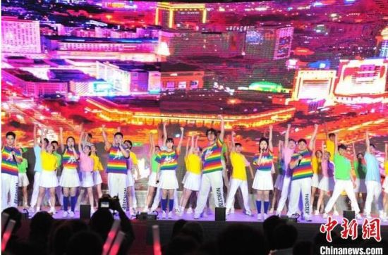 大學(xué)生在表演歌舞《追夢(mèng)人》。