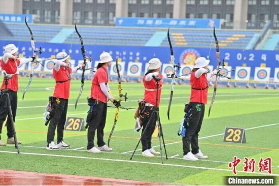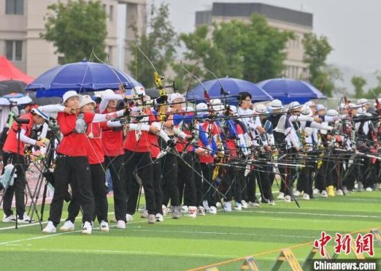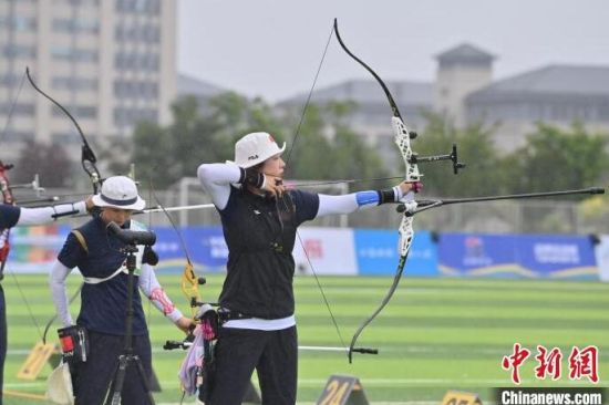 7月3日,吉林遼源,參賽選手參加女子個(gè)人70米輪賽。 當(dāng)天,2024年全國射箭巡回賽暨全國射箭分站賽第二站在雨中開弓。來自全國各地的258名運(yùn)動(dòng)員在男子反曲弓個(gè)人、女子反曲弓個(gè)人、男子反曲弓團(tuán)體、女子反曲弓團(tuán)體、反曲弓混合團(tuán)體5個(gè)競(jìng)賽項(xiàng)目上一較高低。(中新社記者 張瑤 攝)