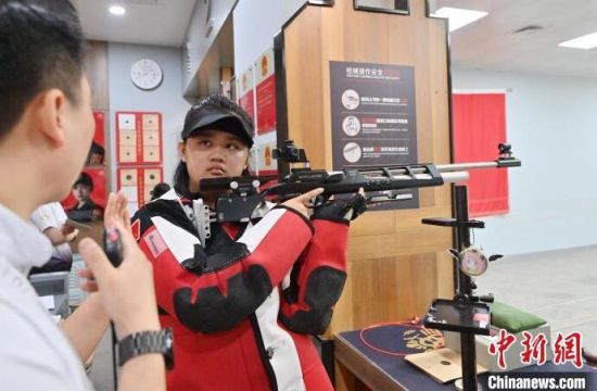7月19日,在吉林省長春市一家氣槍訓練基地,學生們在進行據(jù)槍訓練。正值暑期,該氣槍訓練基地吸引不少青少年體驗射擊運動。(中新社記者 張瑤/攝)