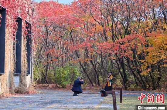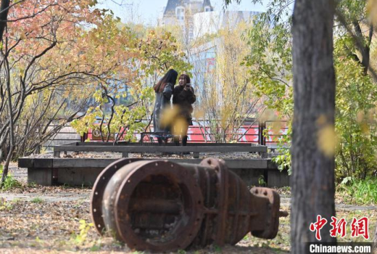 10月17日,在長春水文化生態(tài)園,游客在拍照留念。近年來,隨著城市發(fā)展,長春很多老工廠陸續(xù)遷往新址,閑置的老廠房則被改建成具有紀(jì)念意義的工業(yè)遺址公園。長春水文化生態(tài)園原為長春凈水廠,該廠遺留的設(shè)施、廠房與植物組成獨(dú)特的秋景,吸引眾多游人參觀。中新社記者 張瑤 攝