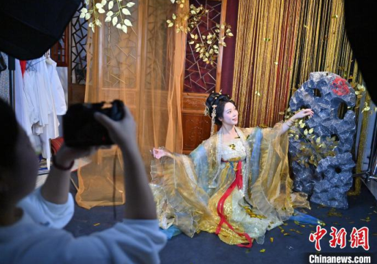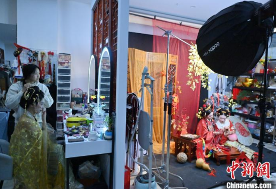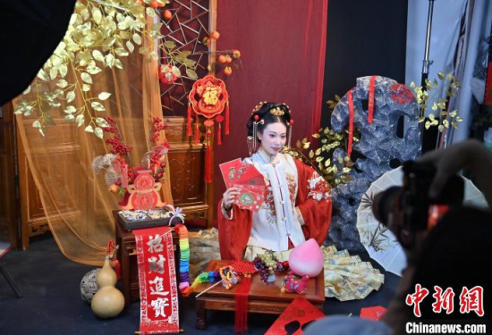 1月6日,吉林長春,市民在拍攝漢服寫真。店家介紹,農(nóng)歷蛇年春節(jié)將至,漢服寫真成了顧客新需求,店家特推出百梅迎春、金蛇賀歲、招財(cái)進(jìn)寶等主題,深受市民喜愛。中新社記者 張瑤 攝