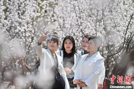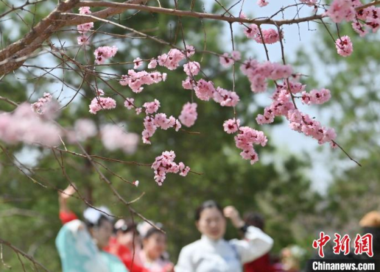 4月23日,吉林長(zhǎng)春,市民在櫻花島賞花。隨著氣溫升高,長(zhǎng)春街頭及公園里的春花競(jìng)相綻放,為城市增添亮麗色彩,吸引市民盡享春日美景。中新社記者 張瑤 攝