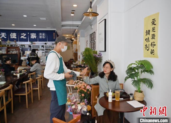 5月8日,吉林長春,“天使之家”餐飲店的店員在收拾餐桌。這里的部分工作人員是孤獨癥患者,這家店旨在助力青年孤獨癥群體就業(yè),融入社會。他們通過訓(xùn)練,已經(jīng)可以完成切菜、備餐、收拾店內(nèi)衛(wèi)生、撤餐等工作。中新社記者 張瑤 攝