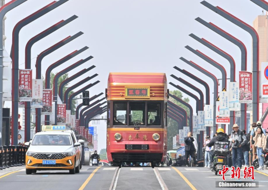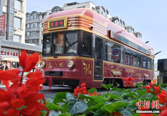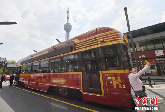 6月4日,吉林長春,市民在氫能源文旅專列旁拍照。該專列由中車長客研制,以歷史文化街區(qū)新民大街建筑群為設(shè)計靈感,車內(nèi)君子蘭花海主題內(nèi)飾與復古留聲機相映成趣。列車采用三級安全防護氫能系統(tǒng),單次加氫續(xù)航320公里。中新社記者 張瑤 攝