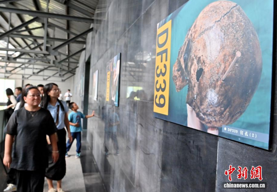8月7日,記者拍攝的東北淪陷時(shí)期遼源礦工墓陳列館的綜合陳列館——遼源礦工紀(jì)念館。該陳列館是日本侵華期間強(qiáng)占東北、掠奪資源、殘害中國礦工的重要罪證!熬乓话恕笔伦兒螅湛茉诖睡偪耖_采煤礦14年,導(dǎo)致8萬至10萬礦工慘死。如今,這片占地6萬平方米的遺址內(nèi),197具完整遺骸和20余具零散遺骨靜靜陳列,無聲控訴著侵略者的罪行。中新社記者 張瑤 攝