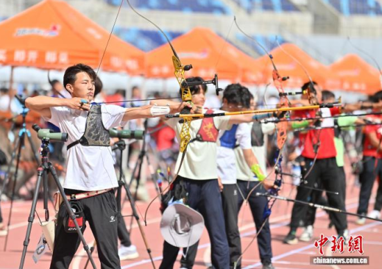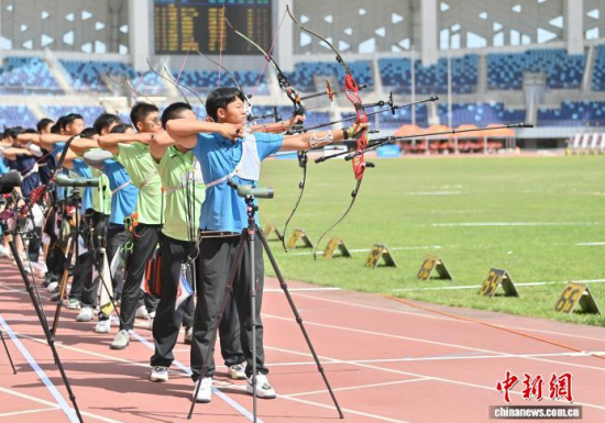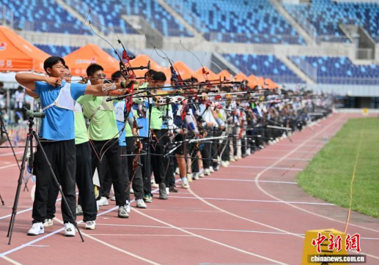 8月21日,吉林長春,運動員參加比賽。 當(dāng)日,2025年全國射箭U16、U18錦標賽在長春開賽,中國各地96支射箭隊的721名運動員張弓搭箭,一較高下。 中新社記者 張瑤 攝