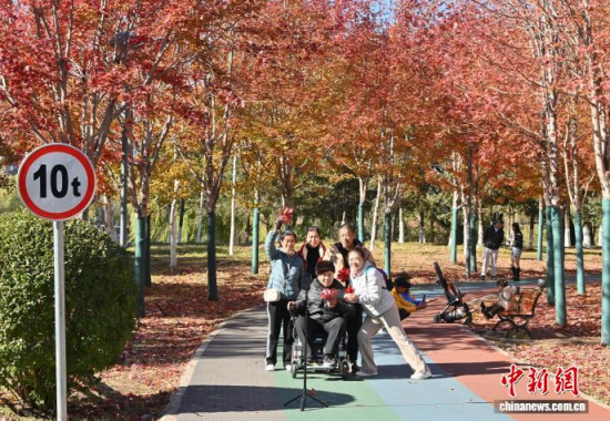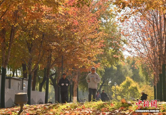 10月30日,吉林長(zhǎng)春秋景怡人,市民踏葉賞秋,享受秋日美好時(shí)光。 中新社記者 張瑤 攝