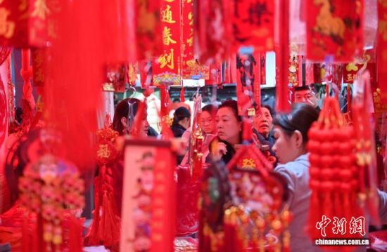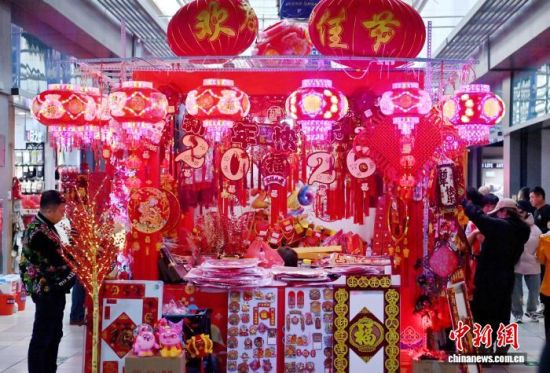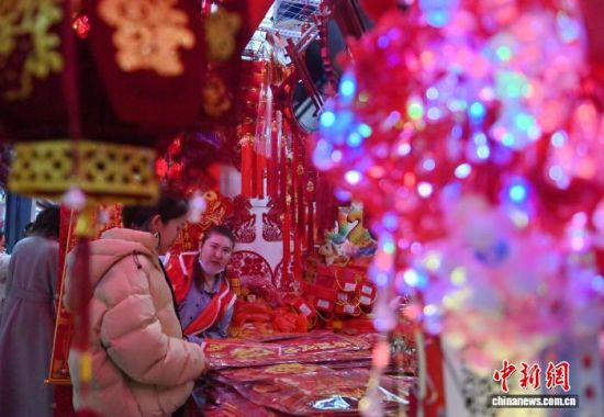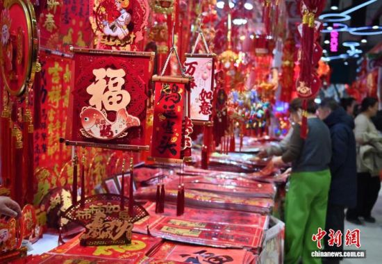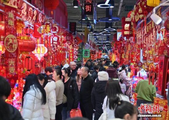 2月12日,長春一家商場的年貨區(qū)年味十足。隨著農(nóng)歷馬年春節(jié)的臨近,各類生肖飾品、年節(jié)掛飾銷售持續(xù)升溫,琳瑯滿目的新春飾品吸引民眾駐足挑選。中新社記者 張瑤 攝