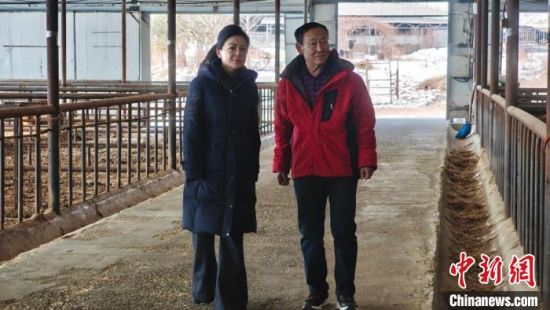 呂愛輝(左)在吉林延邊的一家養(yǎng)殖場了解肉牛生長情況!∈茉L者供圖