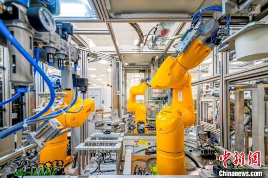 中新網(wǎng)長(zhǎng)春4月20日電 (記者 郭佳)在長(zhǎng)春一家汽車電子工廠,AGV機(jī)器人來(lái)回穿梭將物料精準(zhǔn)送到生產(chǎn)線指定位置,一排排工業(yè)機(jī)器人靈活地組裝工件。