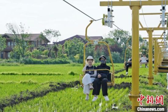 中新網(wǎng)延邊7月11日電 (李彥國(guó))游人們的歡笑聲從一臺(tái)明黃色的低空纜車中溢出,為稻浪翻涌的田園畫(huà)卷增添了躍動(dòng)的“音符”。