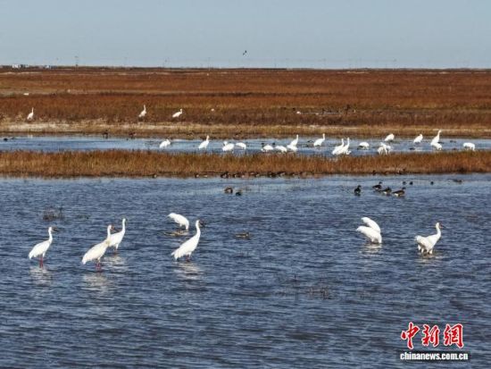 5日清晨,在該縣的二龍濤河流域,記者與保護人員觀測到400多只白鶴、3000余只灰鶴及上萬只雁鴨。東方白鸛、白枕鶴、小天鵝等珍稀鳥類也相繼現(xiàn)身,在水面與稻田間穿梭。