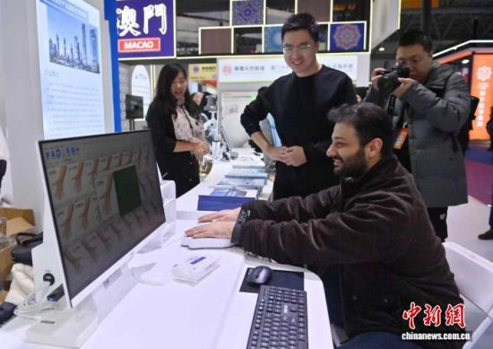 2025長(zhǎng)春國(guó)際醫(yī)藥健康產(chǎn)業(yè)博覽會(huì)暨長(zhǎng)白山人參產(chǎn)業(yè)高質(zhì)量發(fā)展大會(huì)上,外國(guó)觀眾正在體驗(yàn)中醫(yī)經(jīng)絡(luò)檢測(cè)儀。張瑤 攝