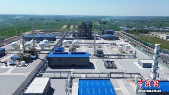 2025年7月15日,吉林白城,上海電氣洮南市風(fēng)電耦合生物質(zhì)綠色甲醇一體化示范項(xiàng)目投產(chǎn),其通過“綠電制氫+秸稈氣化”合成綠色甲醇。(資料圖) 王闖 攝